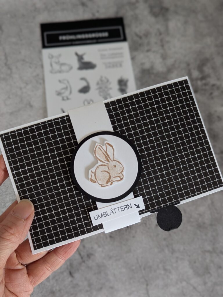 Dekoriert habe ich meine Karte mit dem wunderschönen „Produkt des Monats“-Set: Frühlingsgrüße. Die zarten Motive und frischen Farben passen einfach perfekt zur Frühlingszeit und machen die Karte zu einem echten Hingucker. 🌸