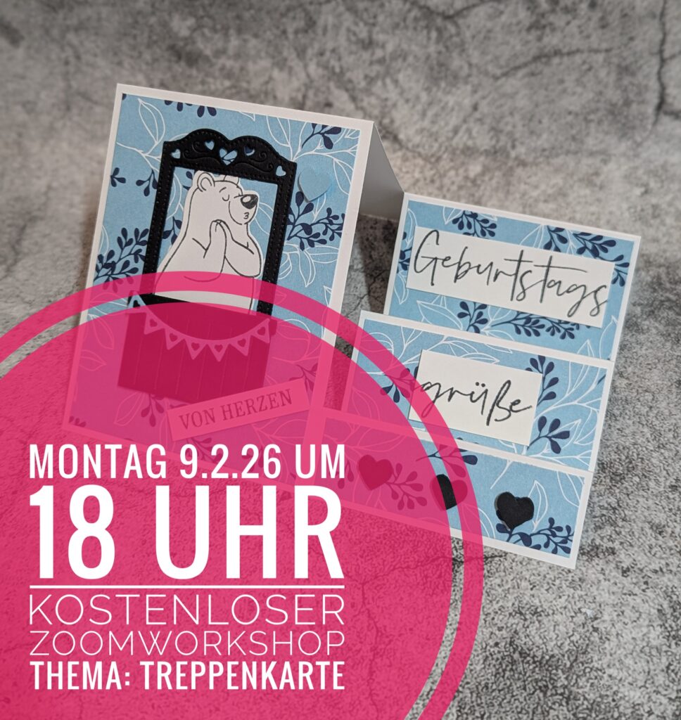 Hast du Lust mit mir gemeinsam über Zoom zu basteln? Dann schreib mich gerne an und ich schicke dir die Materialliste zu dieser Treppenkarte + den kostenlosen Link.