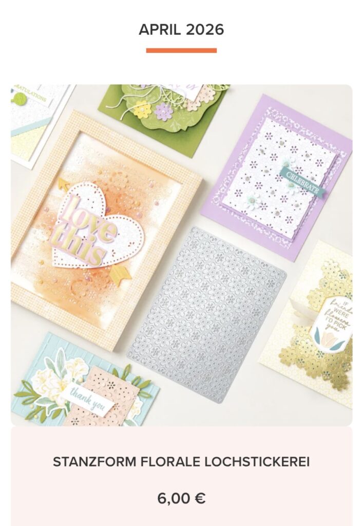 Das Produkt des Monats ist diesmal eine Stanzform. Bei 90 € Bestellwert kannst du dir die Form für nur 6 € mitbestellen. 😉
